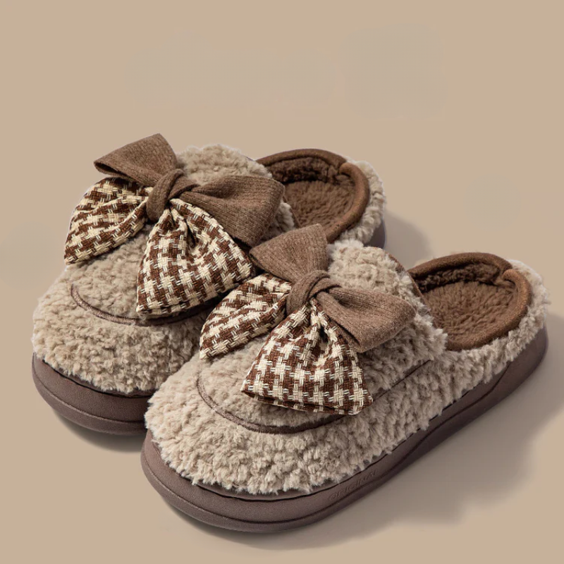 Diesen bezaubernden Teddy-Hausschuhen mit Schleife kann man einfach nicht widerstehen. Sie sind aus weichem Teddyfell gefertigt und bestechen durch eine charmante, große Schleife, ein kuscheliges braunes Futter und eine rutschfeste Gummisohle für optimalen Tragekomfort zu Hause.
